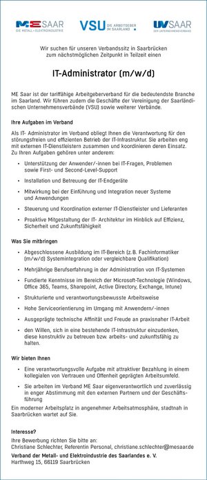 ME Saar sucht IT-Administrator/in (m/w/d)