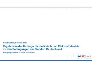 Ergebnisse der Umfrage für die M+E-Industrie zu den Bedingungen am Standort Deutschland