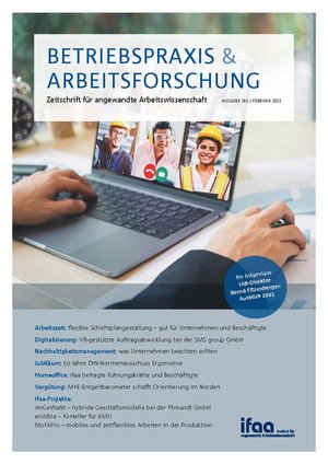 Die moderne Arbeitswissenschaft passt sich stets den sich wandelnden Gegebenheiten in den Unternehmen an. Neue Aufgabenstellungen brauchen auch neue, arbeitswissenschaftliche Herangehensweisen. So forderte die Corona-Pandemie ganz neue Schutzkonzepte in den Unternehmen. Die regelmäßig erscheinende Zeitschrift Betriebspraxis und Arbeitsforschung, die das Institut für angewandte Arbeitswissenschaft (ifaa) herausgibt, informiert über die jeweils neuesten Entwicklungen auch auf diesem Feld.